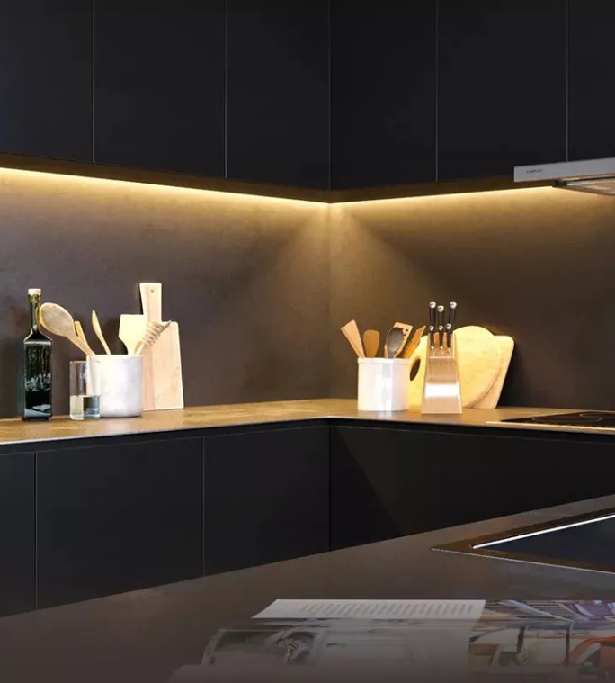 Плоские световые короба более удобны и подходят для размещения под шкафами под прямым углом, освещая небольшие темные углы.